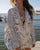 Pattern Print V-Neck Long Sleeve Shirts & Shorts Vacation Outfit Summer Satin 2Pcs Temperament Suit